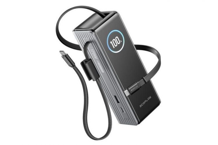 正浩 EcoFlow RAPID 充电宝自带充电线,支持快充,还可选自带插头版本,方便旅行时用作移动电源。