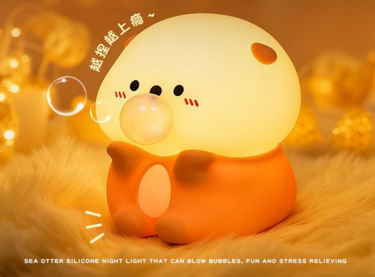 吹泡泡海獭治愈系小夜灯硅胶外壳,拍打亮灯,手捏吐泡泡,专治不开心。