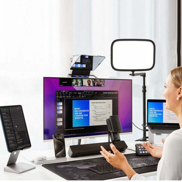 伊卡图 Elgato Prompter 多功能提词器内置 9 寸高清显示屏,支持投影文本,还可显示应用程序,支持单反/网络摄像头/智能手机,方便进行面试、直播、视频会议、演示文稿,在保持眼神交流的同时,看到提示内容,让思路清晰流畅,减少犯错,提升效率,快速录制视频、远程交流。