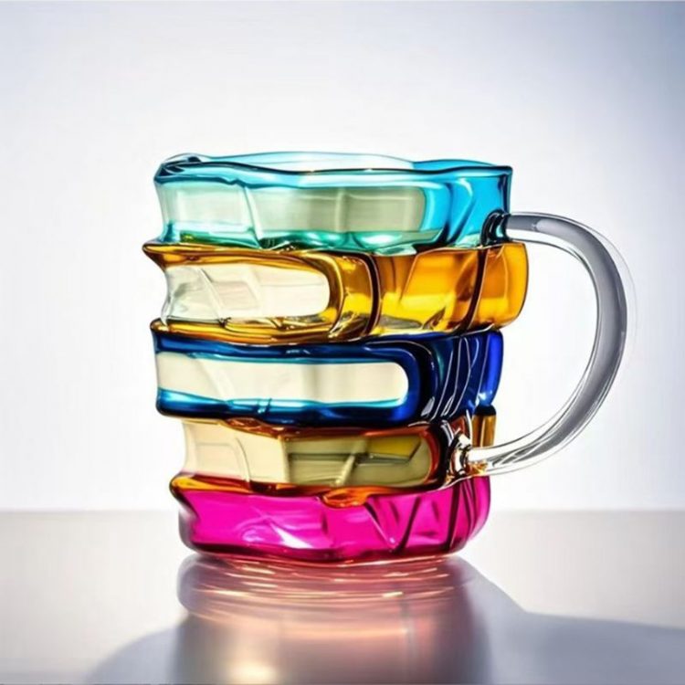 Luxury Flowers 彩绘书本咖啡杯采用高硼硅玻璃,3D立体书本堆叠造型,手工绘制,体现艺术美感。