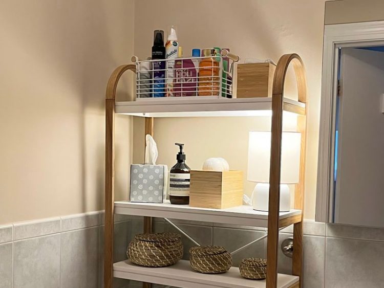 Umbra BellWood 卫生间浴室置物架可安装在马桶后方,白蜡木材质,提升空间格调,增加置物空间。