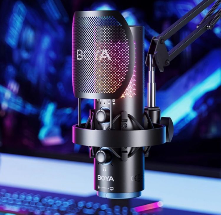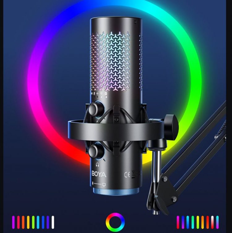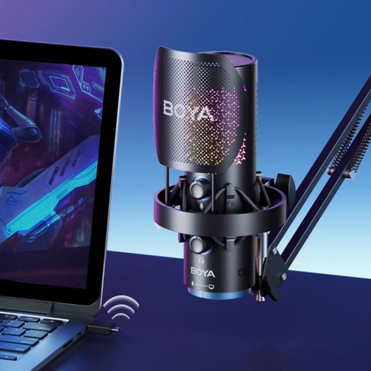博雅 BOYA K5 电脑麦克风支持有线/无线双模连接,带动态灯效,用于专业录音、主播直播、游戏连麦等场合,AI 智能降噪,实现录音棚级收音效果。