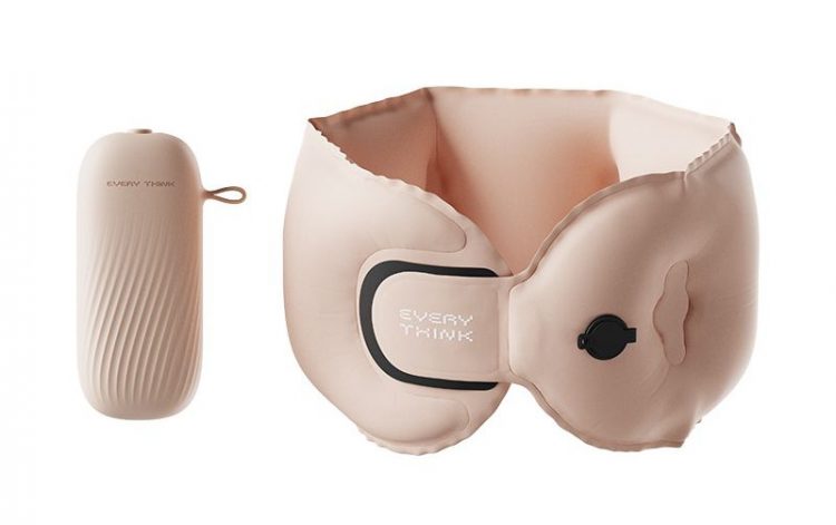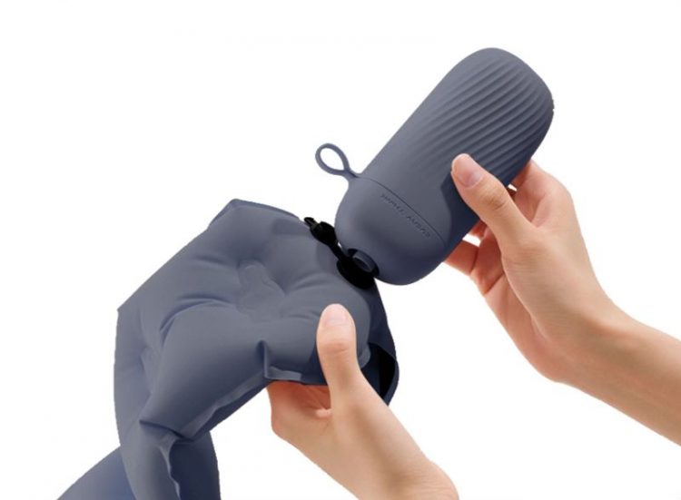 轻量化 U 型枕眼罩充气使用,带收纳胶囊,可用来打气,方便旅行使用。