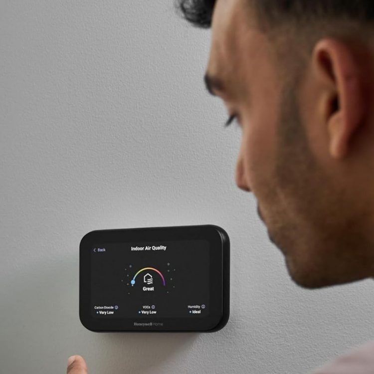 霍尼韦尔 Honeywell Home X8S 智能恒温器自带 5 英寸显示屏,配合兼容的无线传感器和智能控制设备,能够感知并自动调节家庭温度,支持自定义显示、远程控制、室内空气质量 (IAQ) 监控,支持智能可视门铃,可直接查看并与门口的访客通话,内置雷达人体感应,支持智能离家模式,可根据您是否在场自动调节暖气和空调,让您倍感舒适,且节约能源,融合了舒适性、便捷性和节能性,提升您的居家生活体验。
