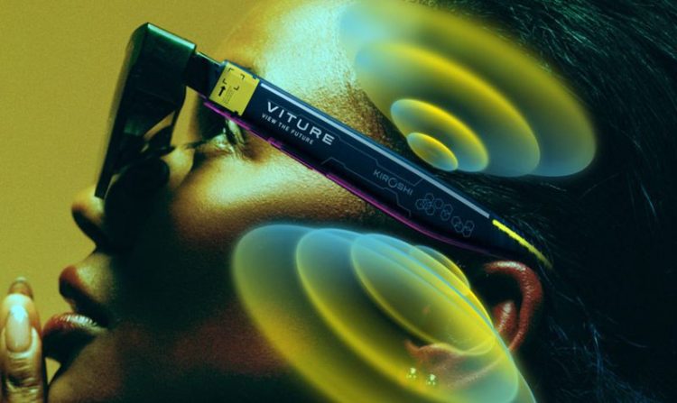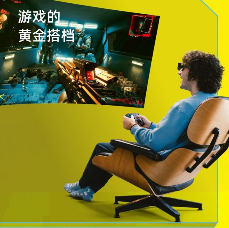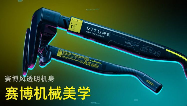 VITURE Luma Cyberpunk 2077 XR/AR 智能眼镜采用透明材质,显示机械美学,内置巨幕,自带音响,实现超清视频显示,用于游戏、娱乐、工作。
