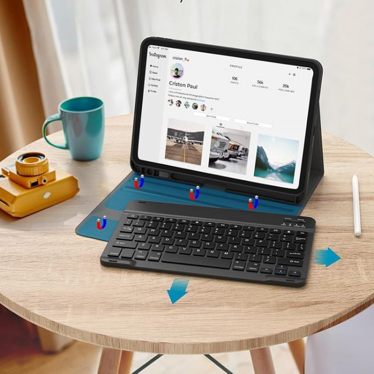 CHESONA 带键盘保护套适用于苹果 11 英寸 iPad Pro(M4 2024/M5 2025),有效保护 iPad 免受碰撞、刮擦和日常磨损,可用作桌面支架,配备了磁吸式可拆卸键盘,带收纳笔槽,方便移动办公文字输入。