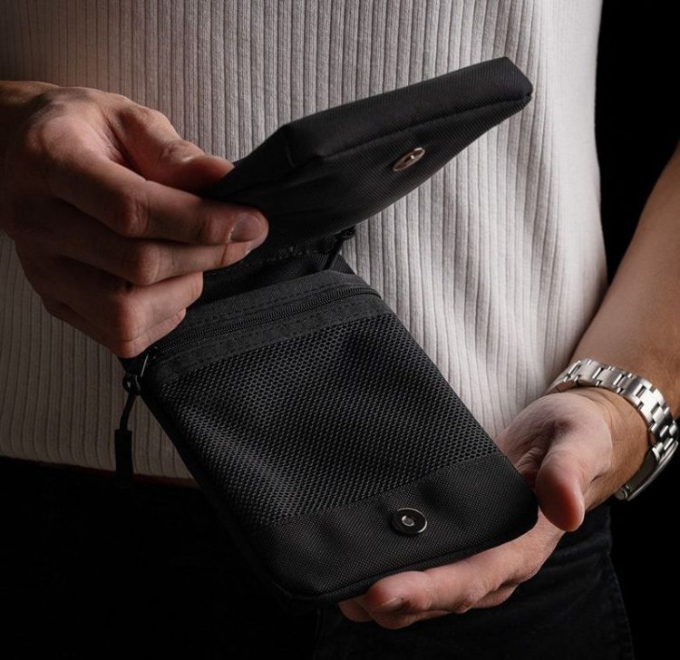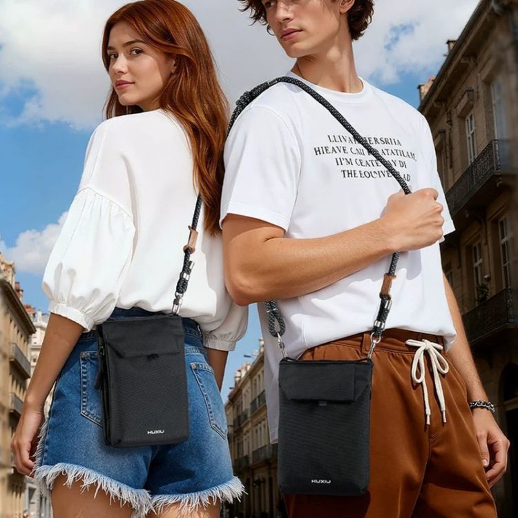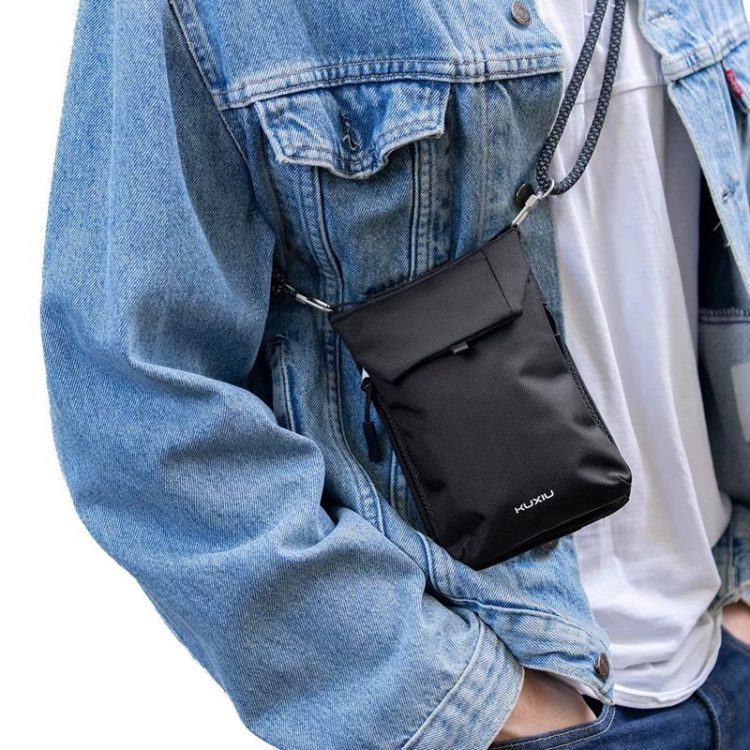酷咻 KUXIU 斜挎包小巧耐磨防泼溅,磁吸开合,设计了屏蔽 RFID 射频识别收纳袋,用于收纳信用卡、手机等随身物品。