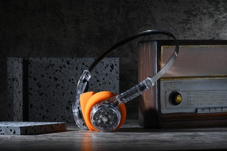 MONDO Freestyle 头戴式透明蓝牙耳机采用金属头带,设计简洁,轻量便携,压耳式佩戴,复古、轻奢、时尚。