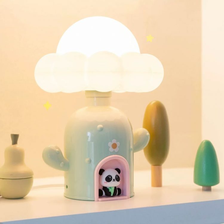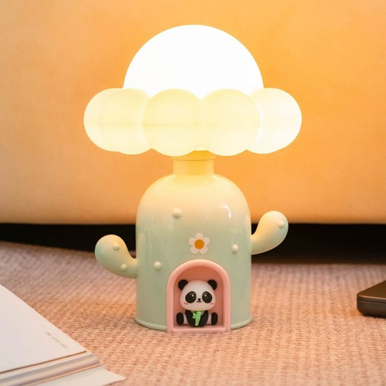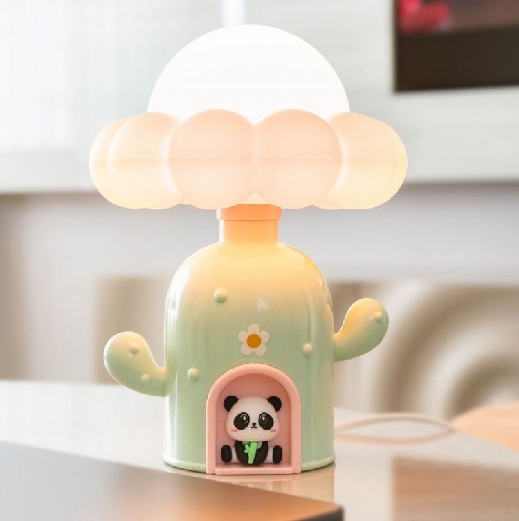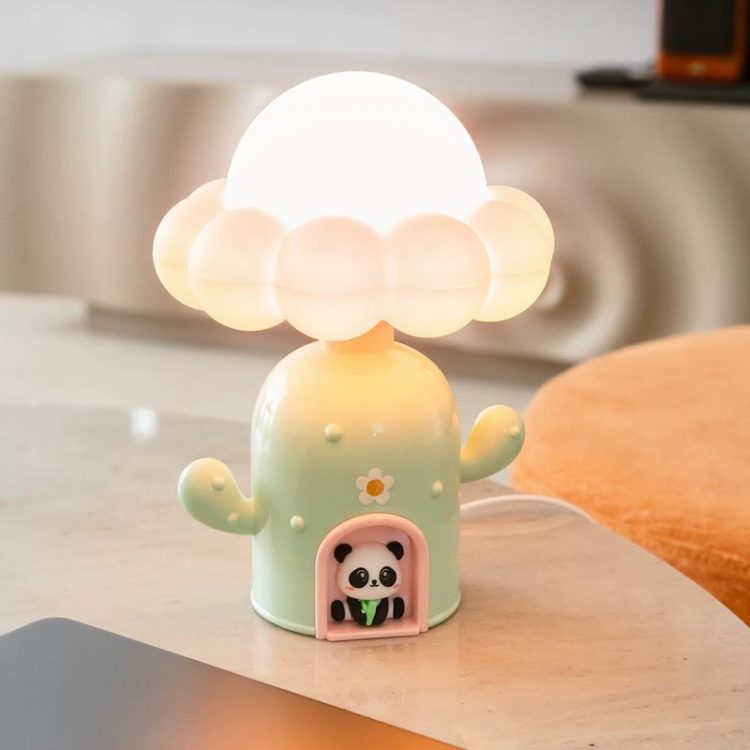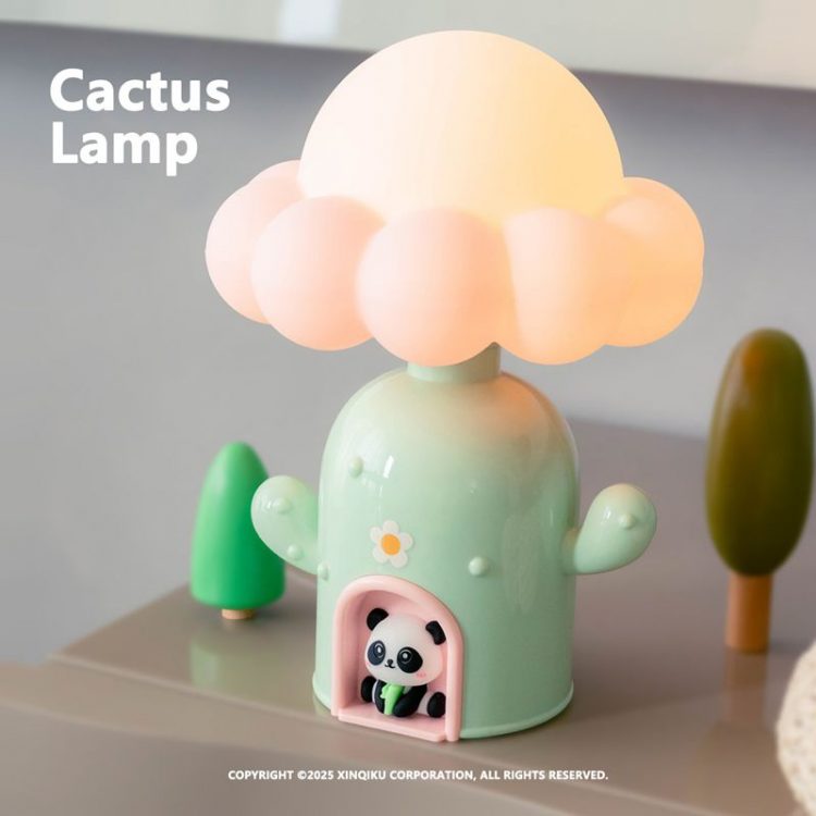 熊猫仔仔仙人掌小屋夜灯造型可爱,USB 供电,柔光陪伴,用作伴睡灯。