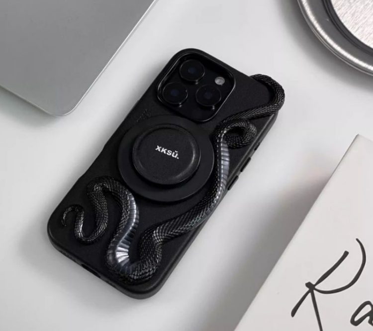 苹果 iPhone 黑蛇手机壳全包防摔,立体盘蛇,设计生动,充满时尚和创意。