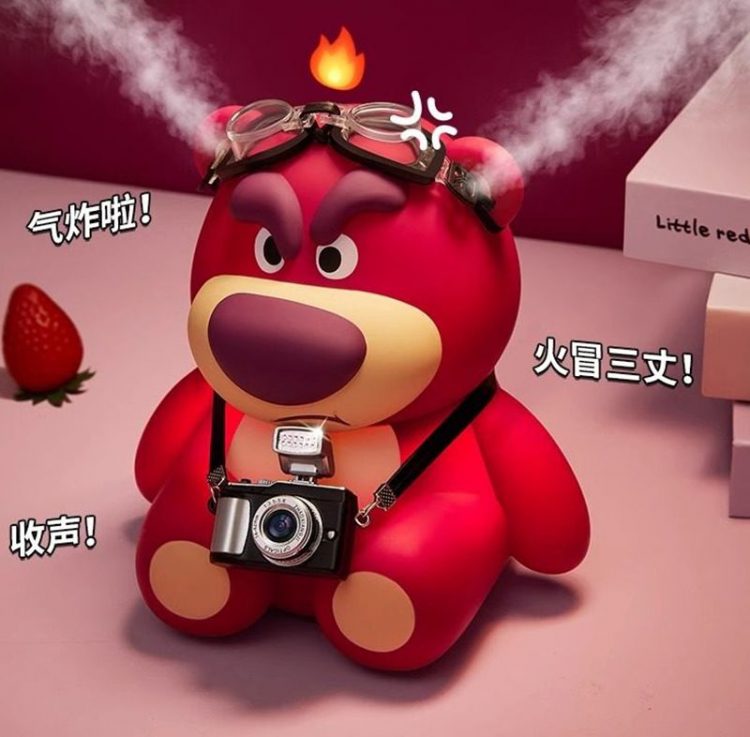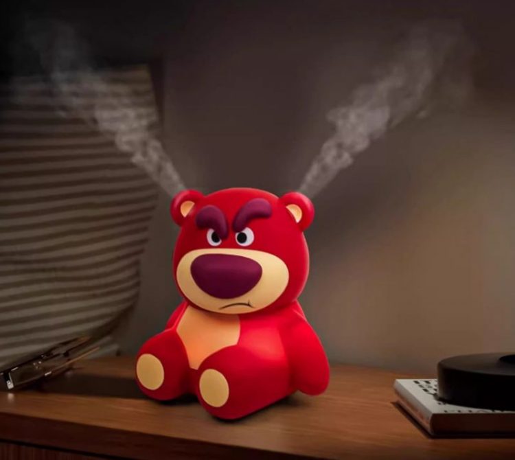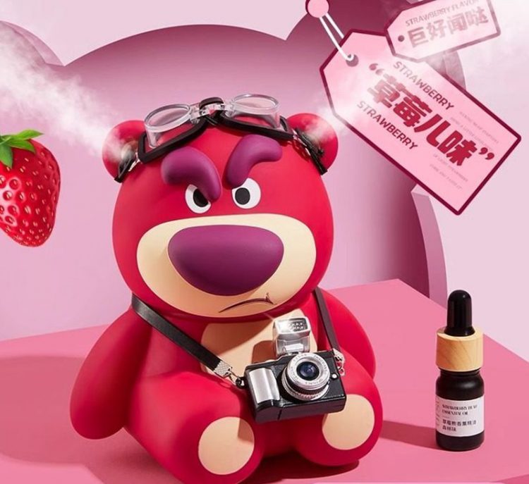 酷火 kufire 草莓熊 Lotso 加湿器采用经典造型,用作室内空气加湿,支持香薰,还是一个小夜灯。