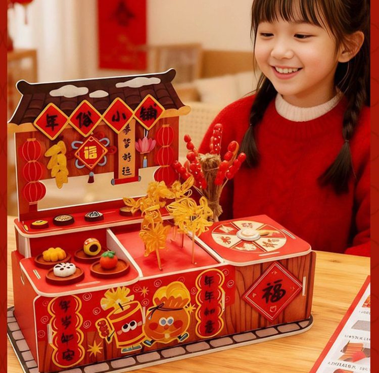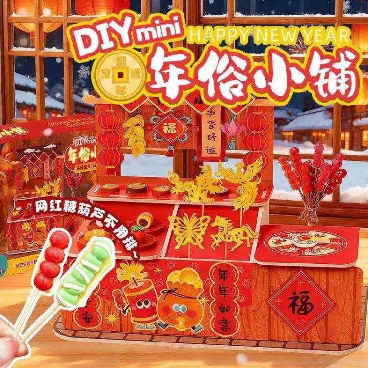 玩具先生非遗手工 DIY 年俗小铺过家家套装提供了各种新年小物件,可搭建一个小铺,是小朋友过家家的玩具。