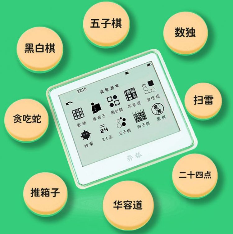 弈狐电子纸阅读器采用护眼墨水屏,方便电子书阅读,内置多款益智游戏,支持对弈训练,还可播放 MP3,一机在手,多种功能。