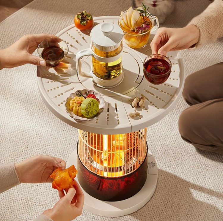 艾美特 AirMate 围炉煮茶取暖器茶几造型,既是远红外取暖炉,也是一个煮茶炉子,大家冬日围坐周围,聊天、取暖、喝茶。