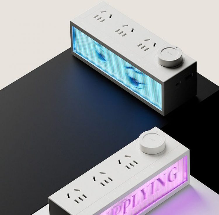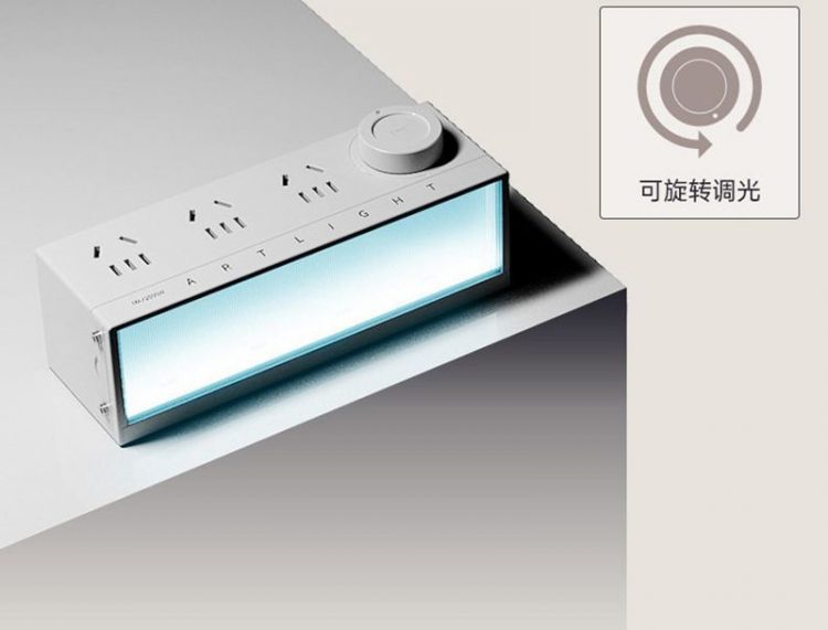 特洛克 TROZK 夜灯插座用作桌面插线板,带 USB 接口和 RGB 灯,无极调光,可更换插片图文用作个性化展示。