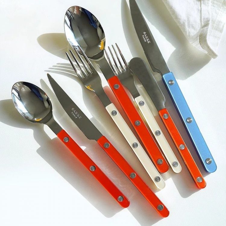 sabre paris 不锈钢餐具来自法国,镜面不锈钢主体,握把多种色彩,提升餐桌格调。