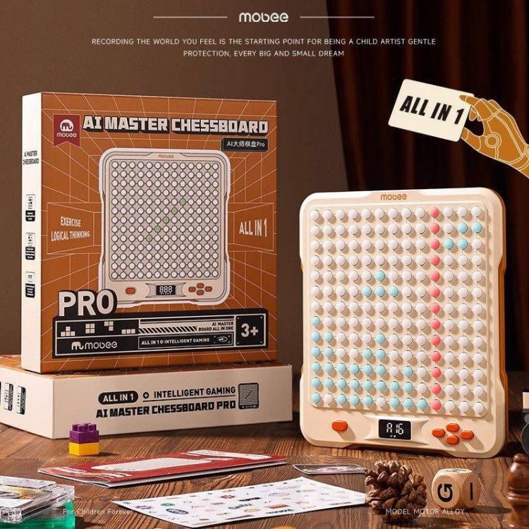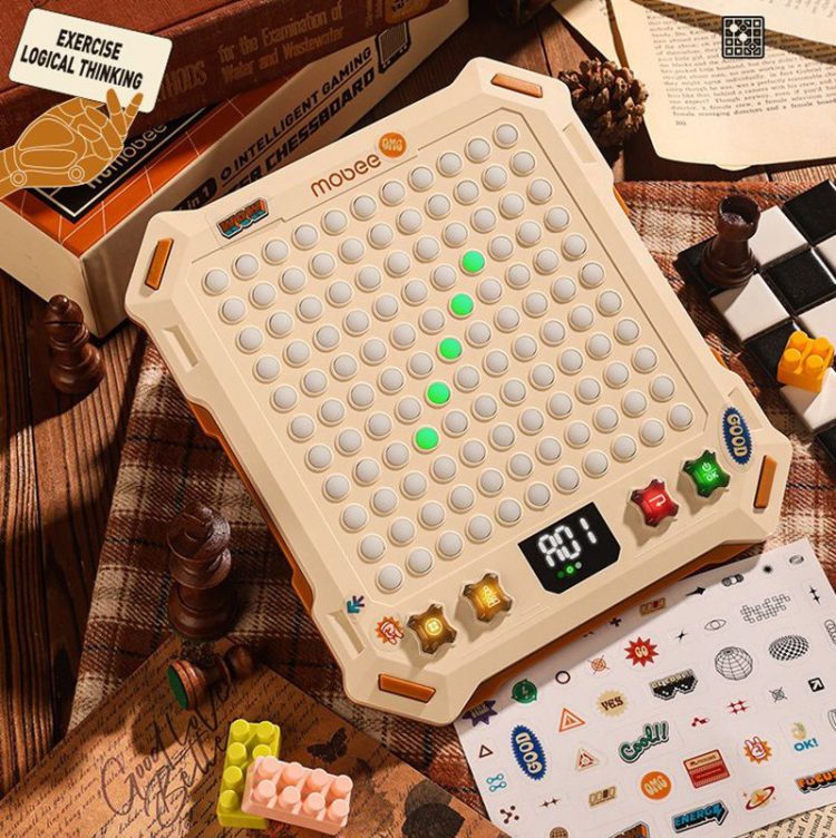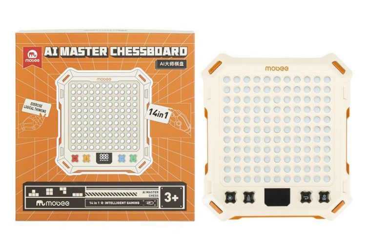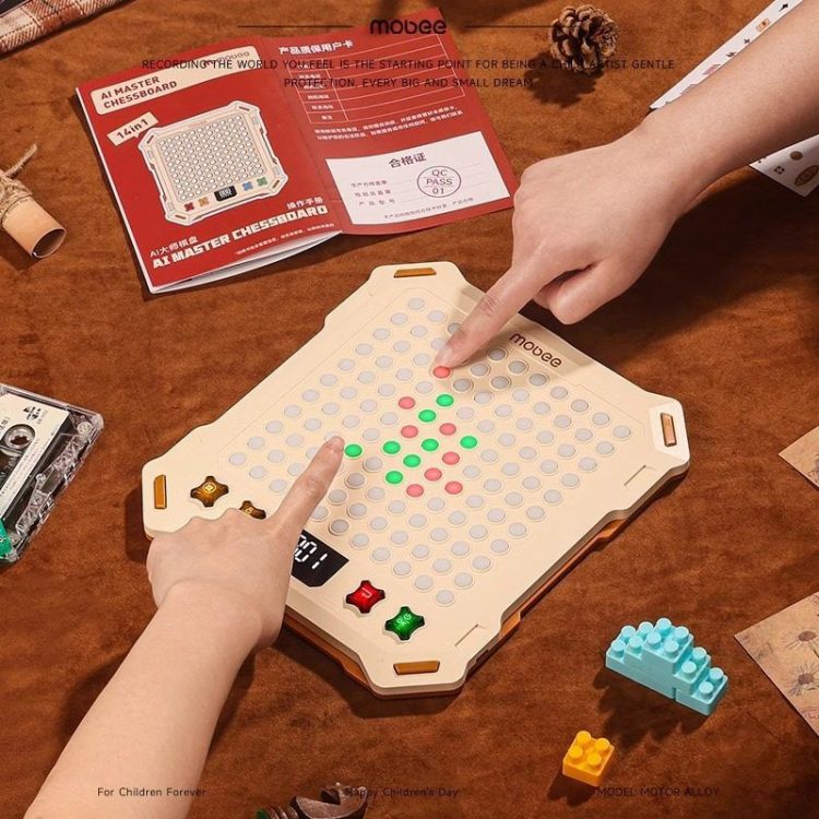 莫贝 mobee AI 大师智能电子版棋盘支持五子棋、围棋、消消乐等 14 种玩法,既可双人对战,也支持人机互动,越玩越聪明。
