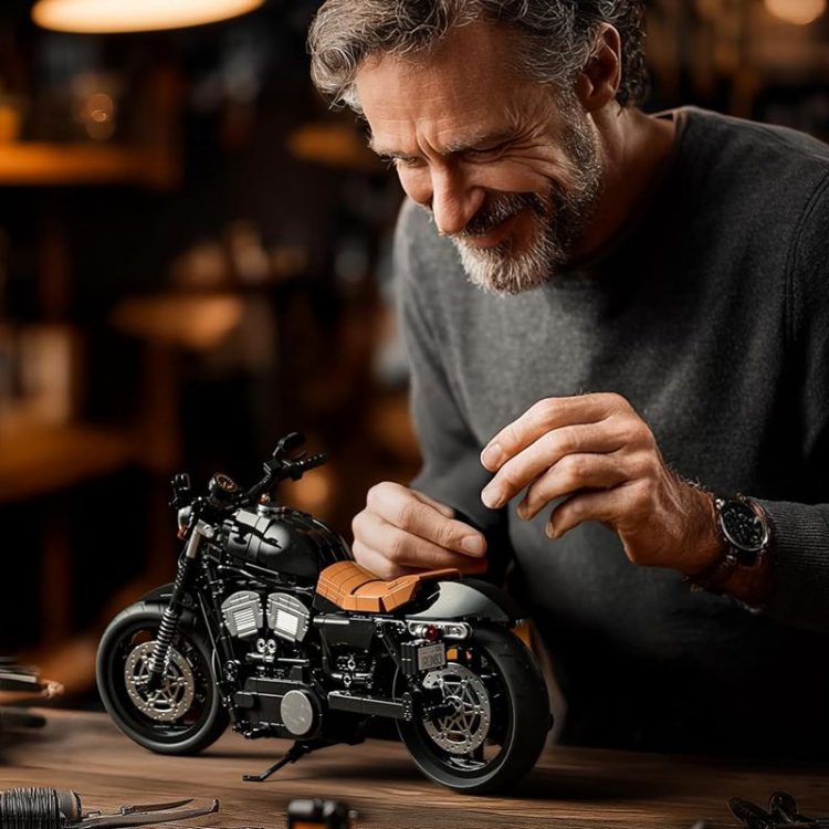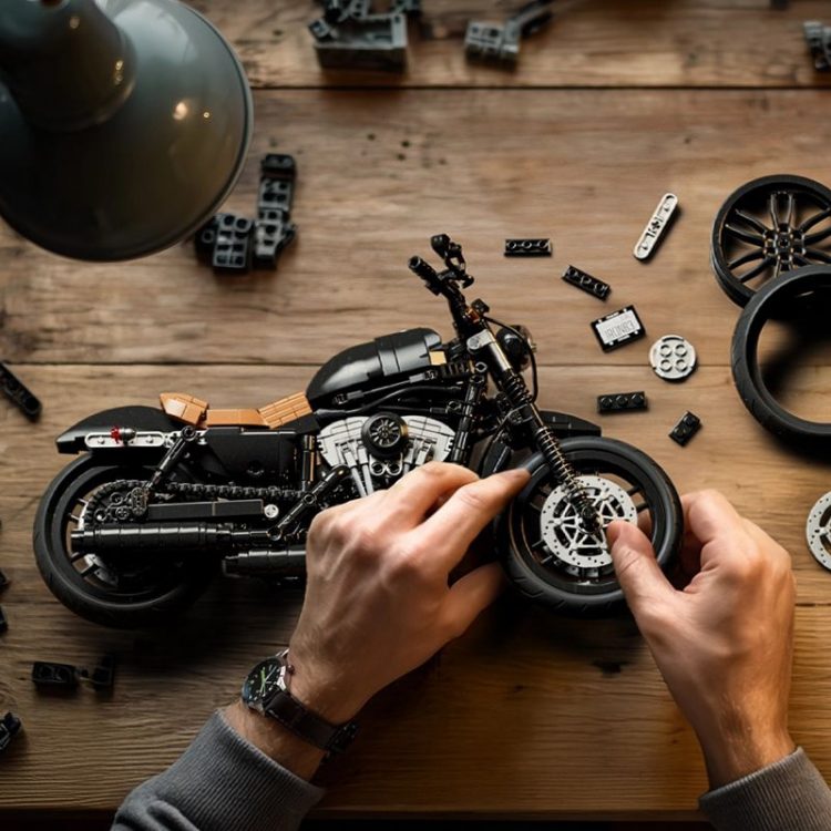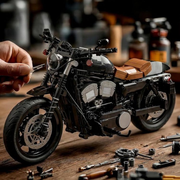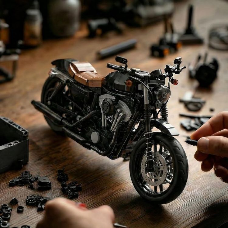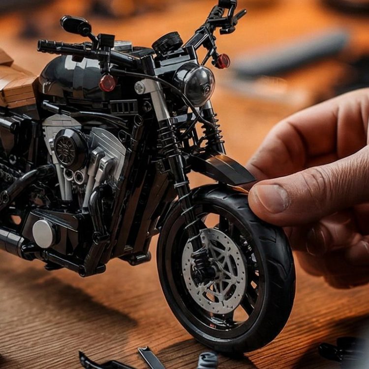 Nifeliz Iron 83 摩托车模型组装积木套装部分部件采用了金属漆涂装,增加了机械感,组装完成后,用作桌面摆件。用手推动摩托车,发动机内活塞可往复运动,还原机械原理。