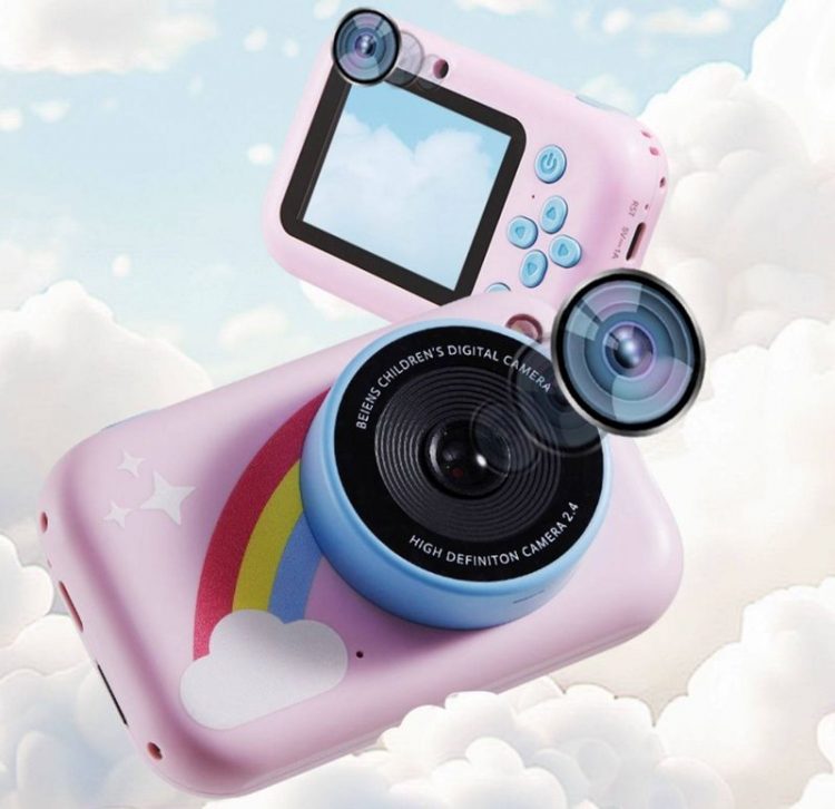 贝恩施 beiens 儿童照相机前后双摄,带硅胶动物造型保护套,支持数码变焦、连拍、录像,用作儿童玩具。