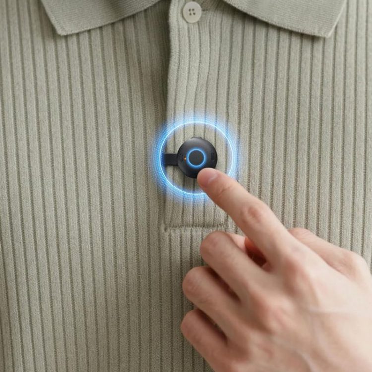 安克 Anker 声阔 Soundcore Work 人工智能录音机仅硬币大小,可夹在领口、挂在脖子上或者磁吸在手机背面等,仅需轻轻按一下,便可用于对话、通话录音,使用 ChatGPT-4o 将对话语音即时识别成文本,进行 AI 总结生成摘要,并存储在您的本地设备上。