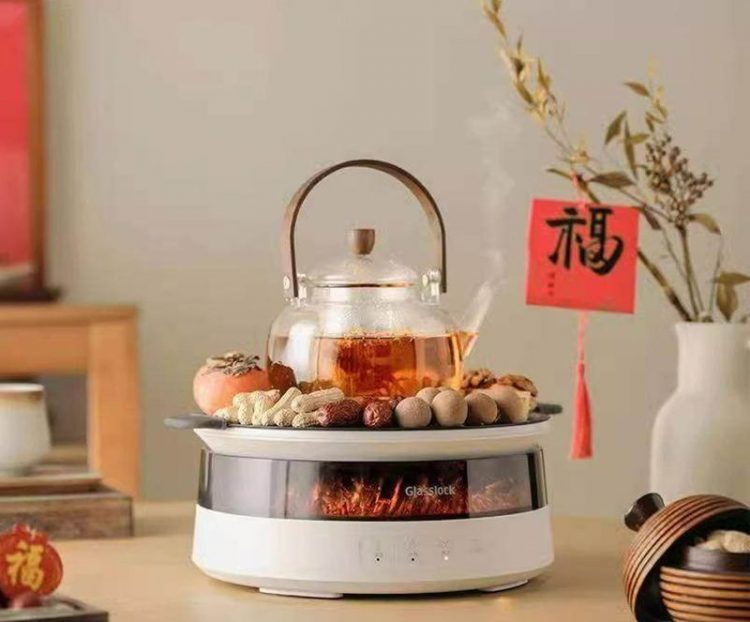 盖朗 Glasslock Baby 星火炉围炉煮茶器采用电加热陶炉,模拟火焰,无烟烧水泡茶,用于冬日朋友小聚。