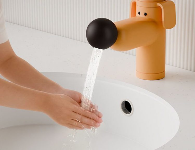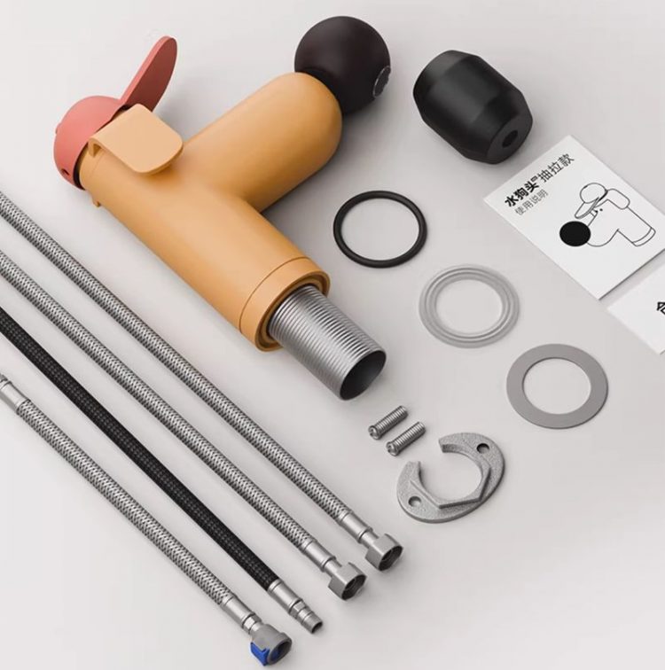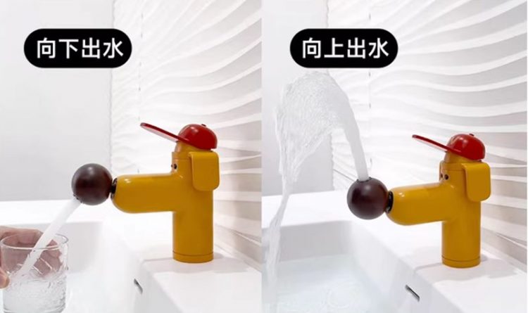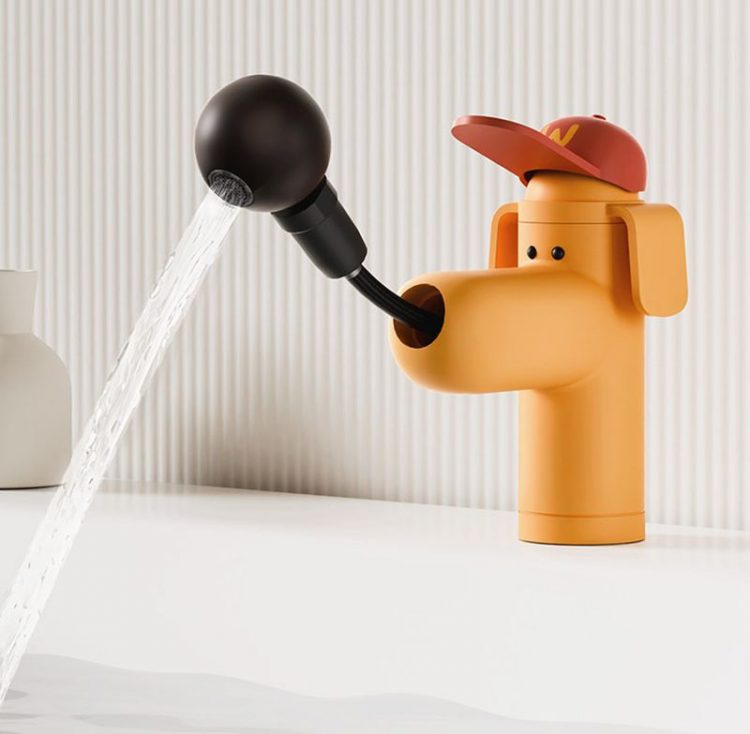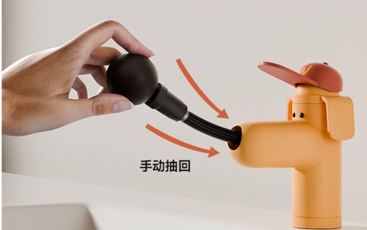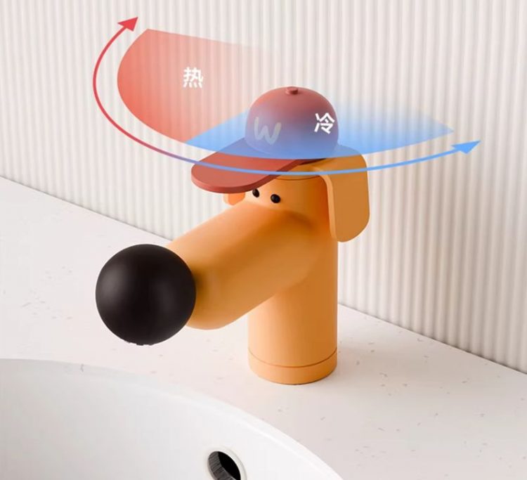 小狗水龙头可爱造型,鼻子出水,可抽拉、转动出水方向,适合给小朋友洗脸洗手盆安装使用。