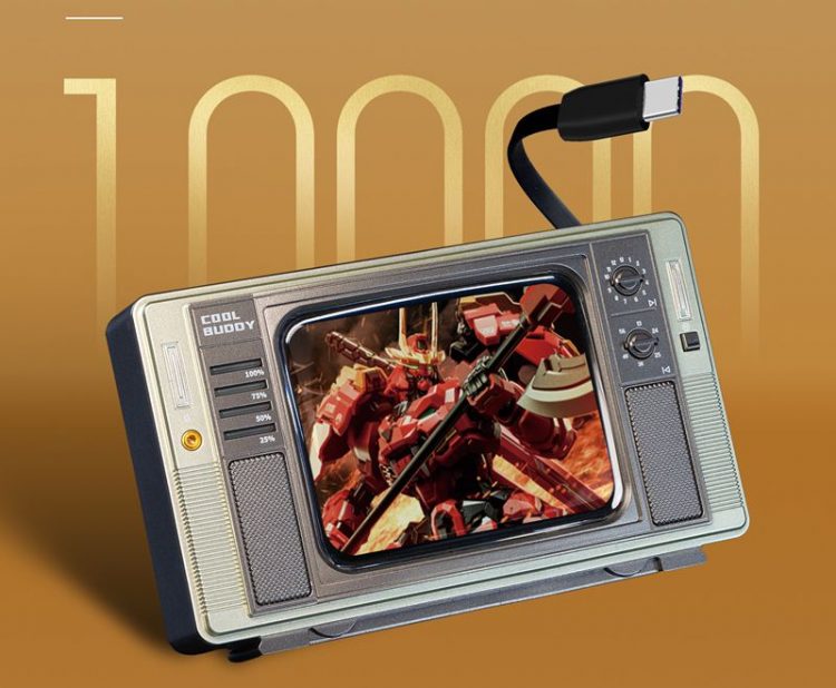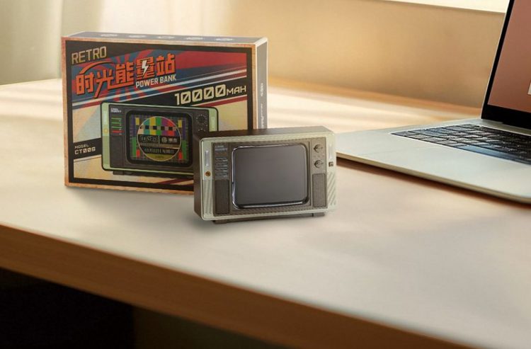 充电宝采用复古电视机造型,带屏幕,自带线,怀旧风,用于移动设备供电。