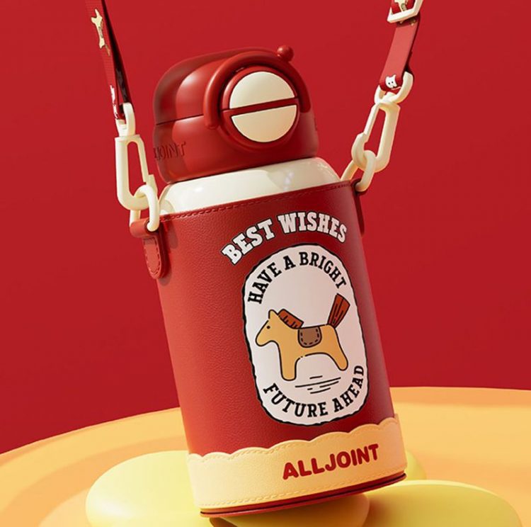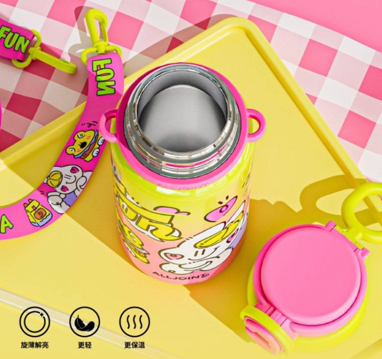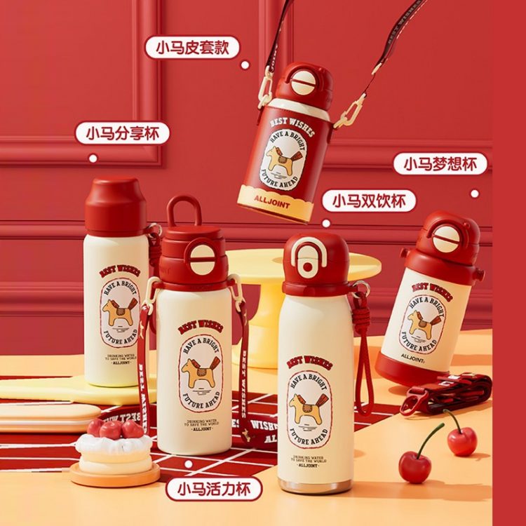 优仅 ALL JOINT 儿童保温杯不锈钢真空双层保温,可爱图案,带皮套、背带、吸管,方便随时补水。