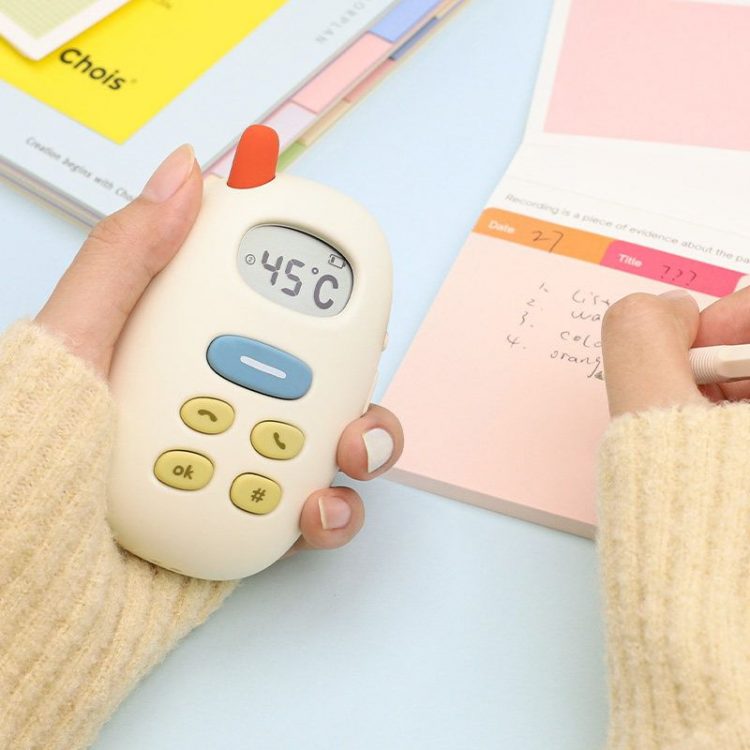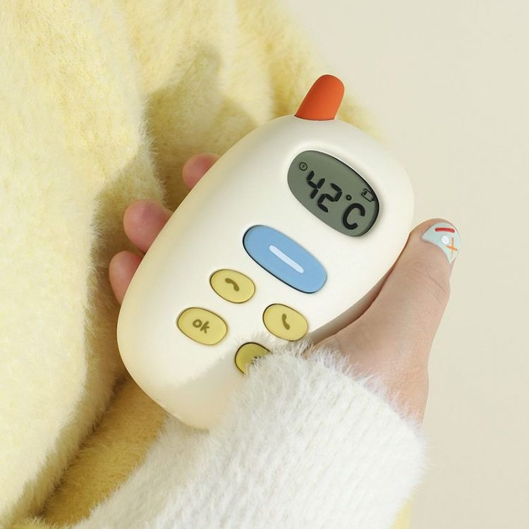 大哥大暖手宝充电使用,按键打开加热,用于冬日取暖,也支持给移动设备供电。