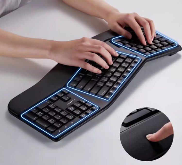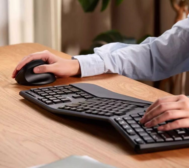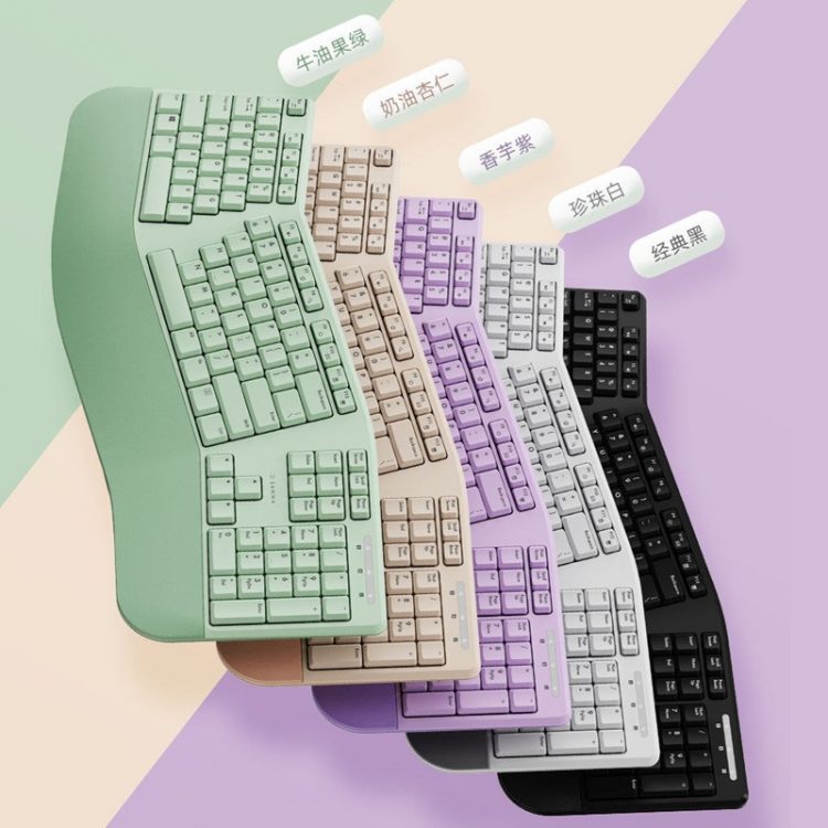 无线键鼠套装人体工学拱形设计,缤纷色彩,静音键轴,用作办公输入。