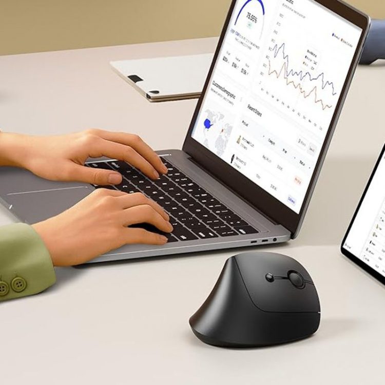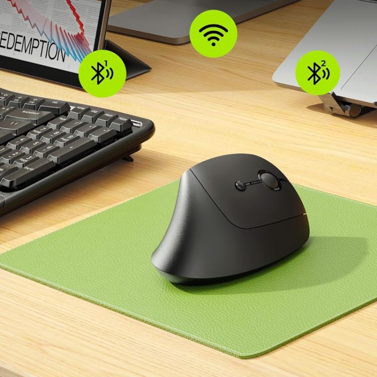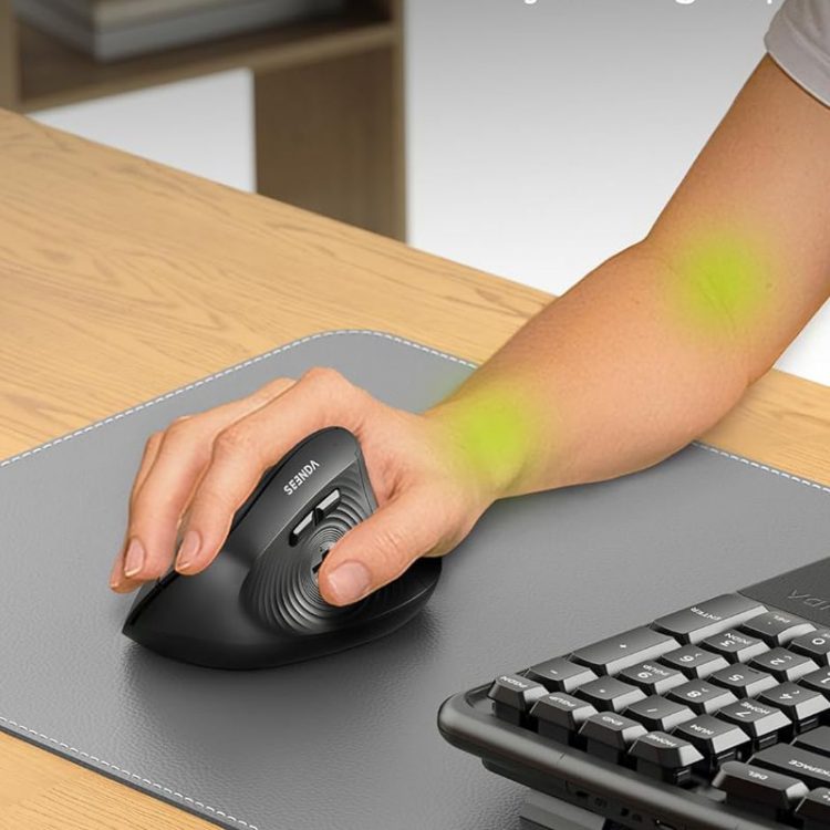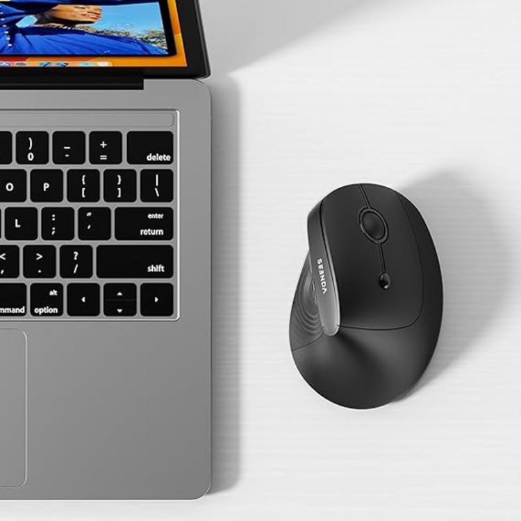 SEENDA MOU200 无线垂直光学鼠标支持 2.4G 无线/蓝牙5.0 连接设备,采用符合人体工学的握持设计,52°垂直握手姿势,让前臂保持放松自然的姿势,显著减轻手腕、手部和肩部的压力和疲劳,带来舒适体验,有助于提高工作效率并减少疲劳。