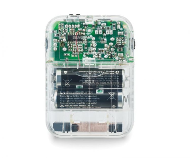 山进 SANGEAN SR32CL 收音机袖珍结构,透明外壳,电池驱动,支持调频、调幅,操作方便,使用简单。
