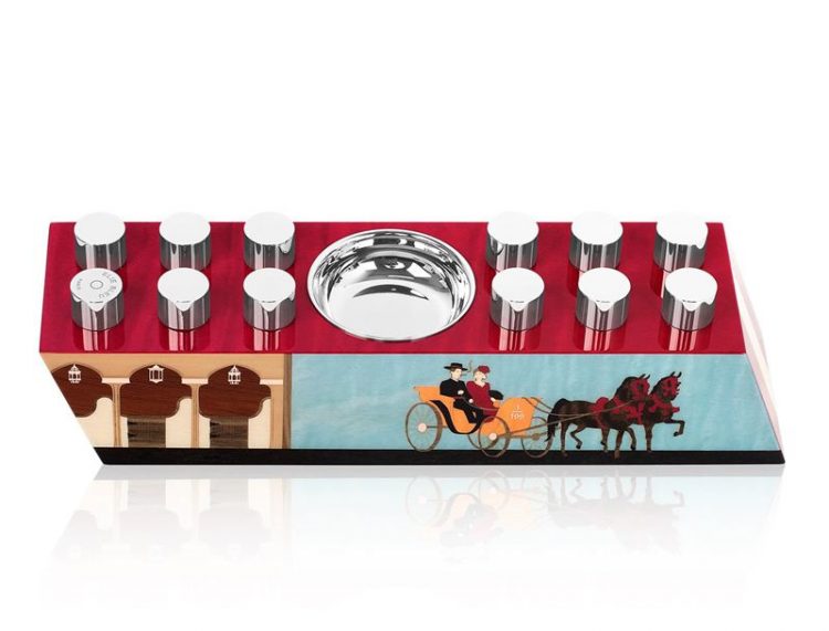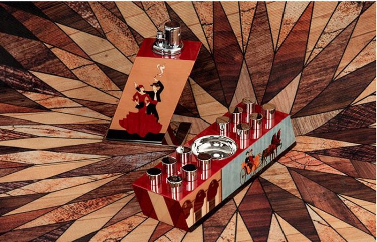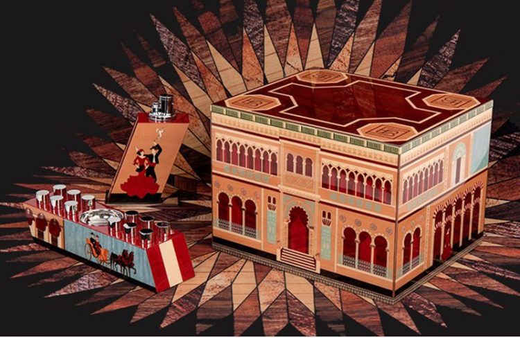 ELIE BLEU 西恩富戈斯系列雪茄套装包括:充气打火机、雪茄烟灰缸、保湿盒,选取安达卢西亚宫殿元素,桃花心木材质,限量销售。