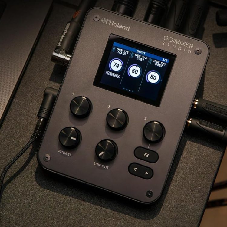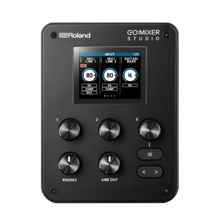 罗兰 Roland GO:MIXER STUDIO 音频混音器紧凑型设计,配备了彩色显示屏,兼容 iOS、macOS 和 Windows 系统,两个 XLR 麦克风/线路输入、吉他/贝斯输入、立体声线路输入和辅助/TRRS 输入,可同时连接麦克风、乐器和移动设备,支持 12 个输入通道,6 个输出通道(192 kHz 时为 8 进/4 出),内置板载均衡器和混响效果器,快速调节音量、音效、均衡器、效果,为视频、流媒体和音乐创建多轨完美音频,双耳机插孔和立体声线路输出方便监听。