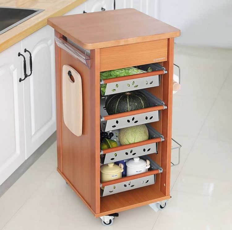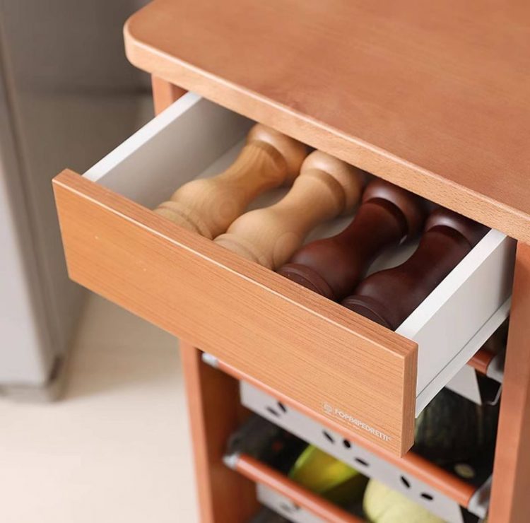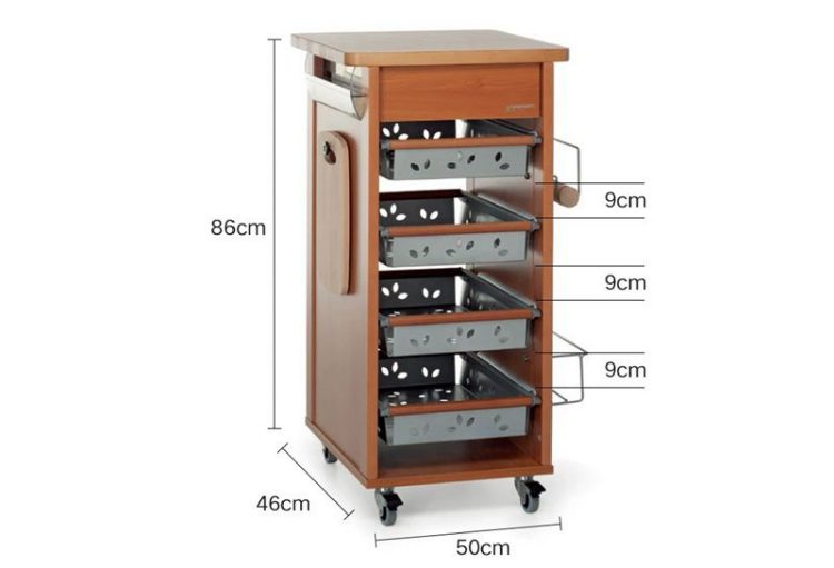 福帕 FOPPAPEDRETTI 收纳推车配备了抽屉和金属拉篮,用于收纳零碎工具和食材,带万向轮方便移动,适合厨房使用。