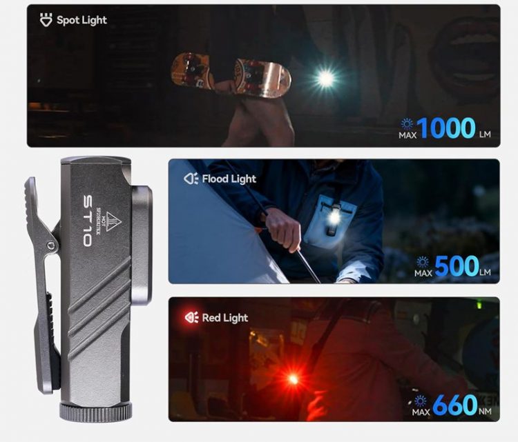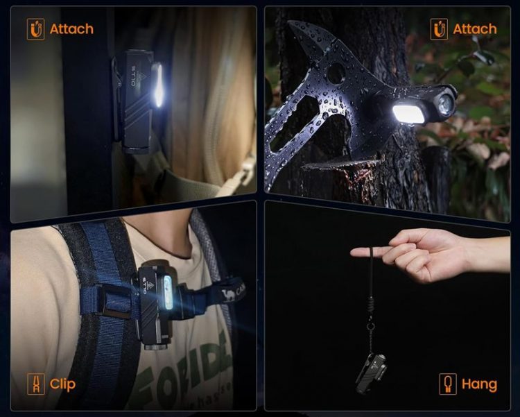 索菲恩 Sofirn ST10 工作灯带夹子支持磁吸,方便固定,白光、红光双光源,用作暗处紧急照明。