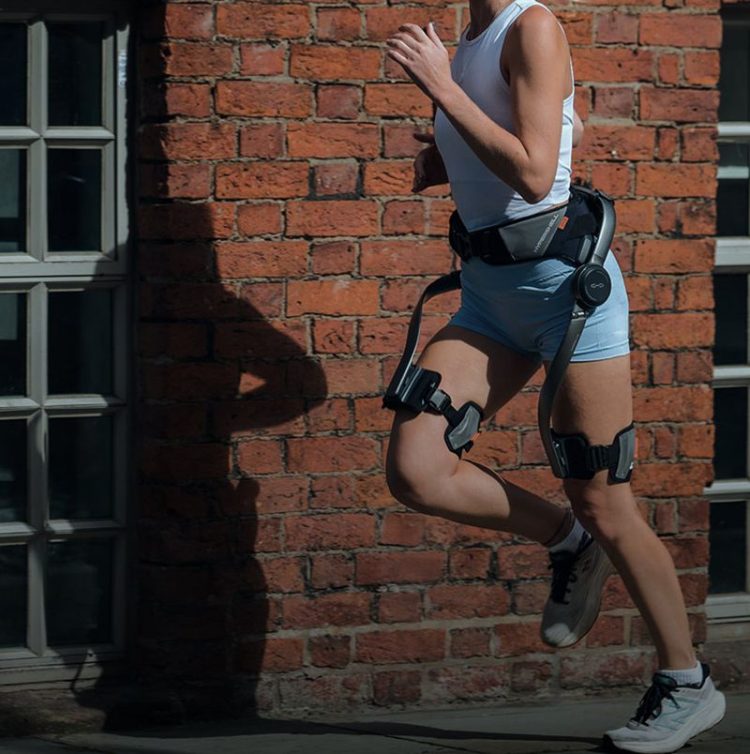 极壳 Hypershell X Ultra 外骨骼助力器穿戴在身上,用作运动辅助,降低体能消耗,提升运动耐力,适合户外运动、登山徒步使用。