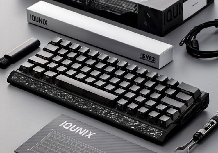 铝厂 IQUNIX EV63 磁轴键盘采用磁玉轴,快速触发,铝合金与锻造碳纤维材质框架,坚固耐用,全键热插拔配备 RGB 背光,适合游戏卡操控。