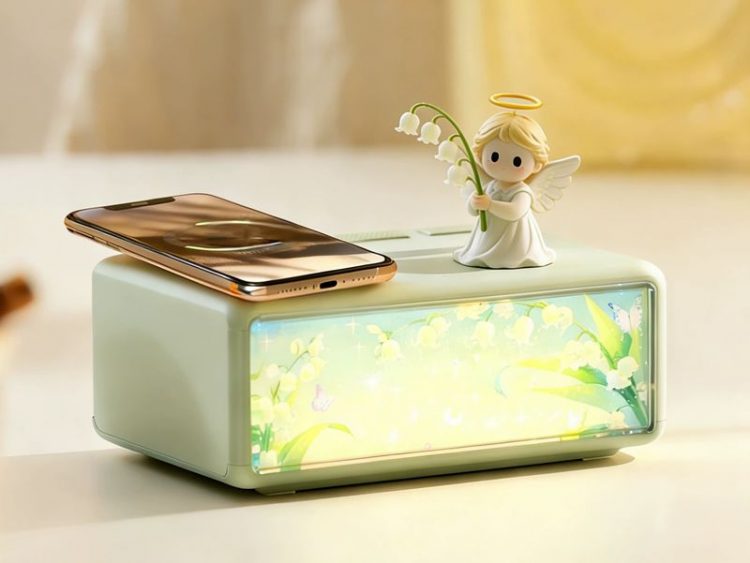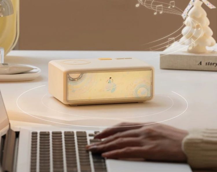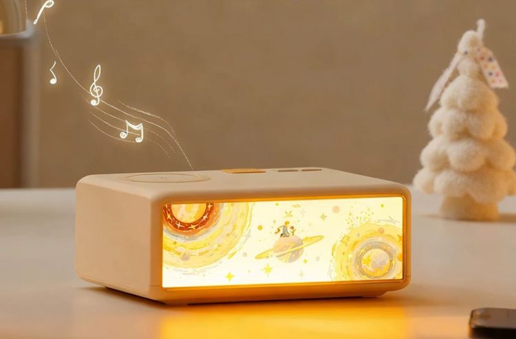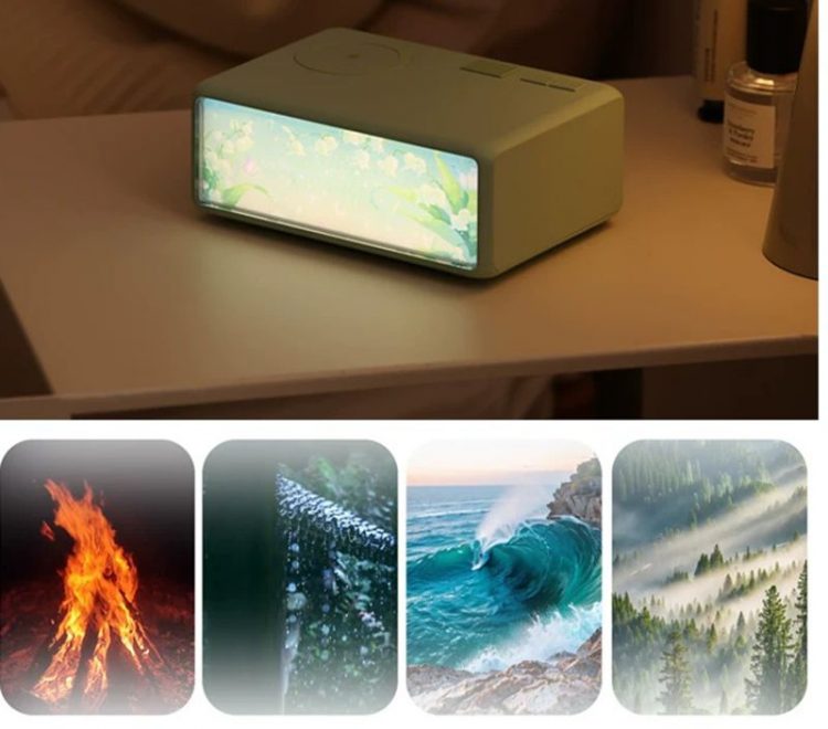 奇悦 CHIELYUAL 小夜灯蓝牙音箱内置锂电,充电使用,既是氛围灯,带灯光画,也是蓝牙音箱,支持无线播放音乐,内置多种白噪音,支持给手机无线充电,适合用作床头灯。