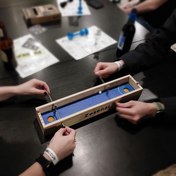Zesenai 迷你桌上足球玩具采用实木打造,搭配不锈钢球杆和毛毡球洞,将足球和曲棍球相结合,带来的快节奏双人 1对1 桌面足球棋盘游戏,每个人都能轻松上手,掌控你的球杆,守住球洞,快速射门进攻 ,几秒钟内即可畅玩,是家庭聚会和派对的绝佳娱乐。