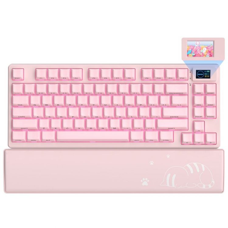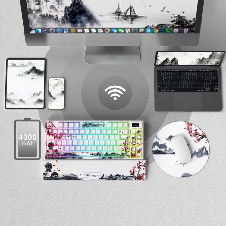 沃弥尔 Womier SK80 PRO 键盘有多种主题可选,采用 ABS 塑料外框,PBT 键帽,75% 配列,支持蓝牙、2.4G 无线和 Type-C 三模连接设计,Womier POM 预润滑线性开关,支持热插拔,可设置个性化 RGB 背光。键盘兼容 Windows / MacOs 等多系统,内置大容量 4000mAh 锂电池,可通过 QMK/VIA 自定义按键映射、创建宏并微调设置,满足您的具体需求。键盘右上角配有多媒体显示屏,可显示 GIF 动画、音量和背光效果。