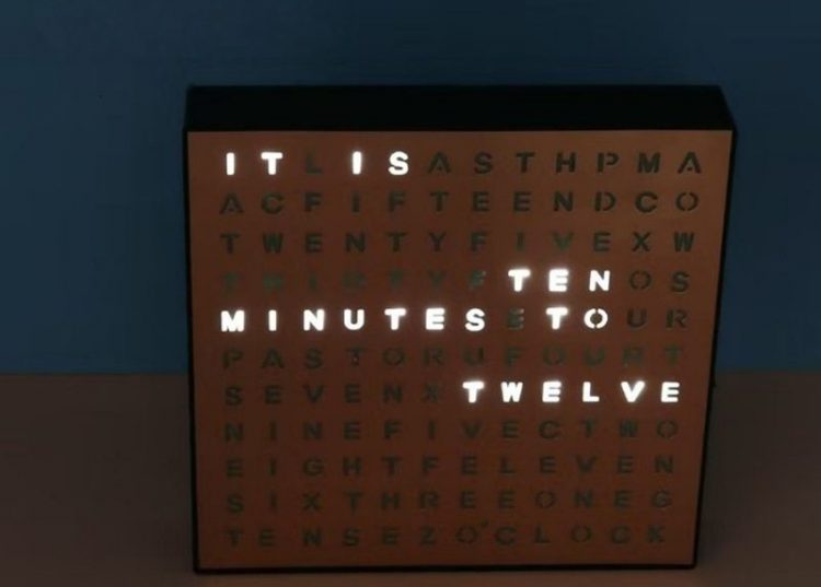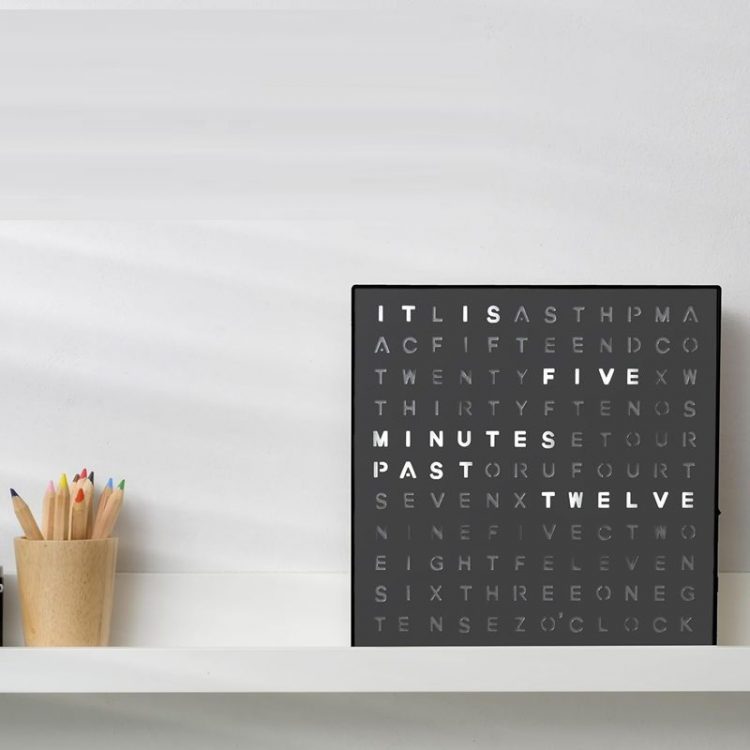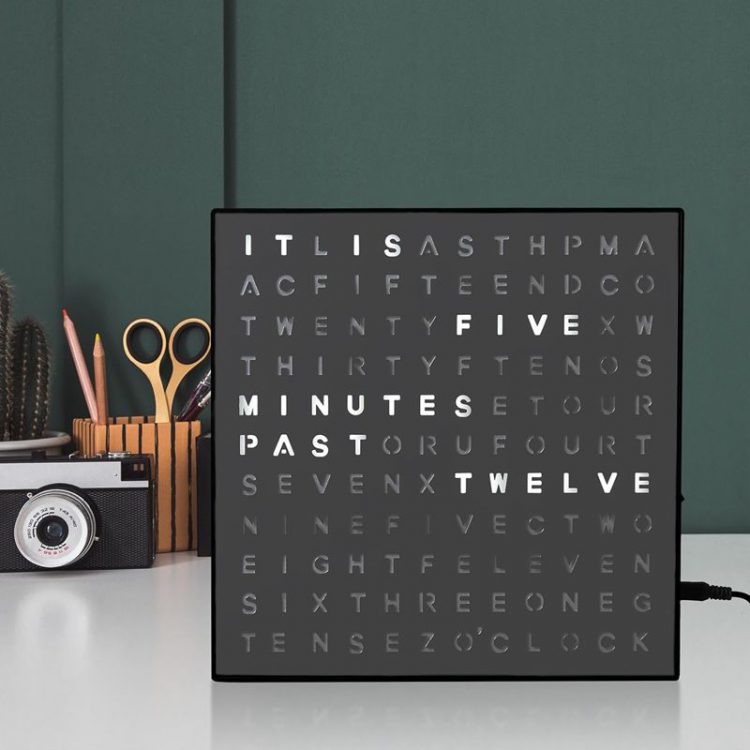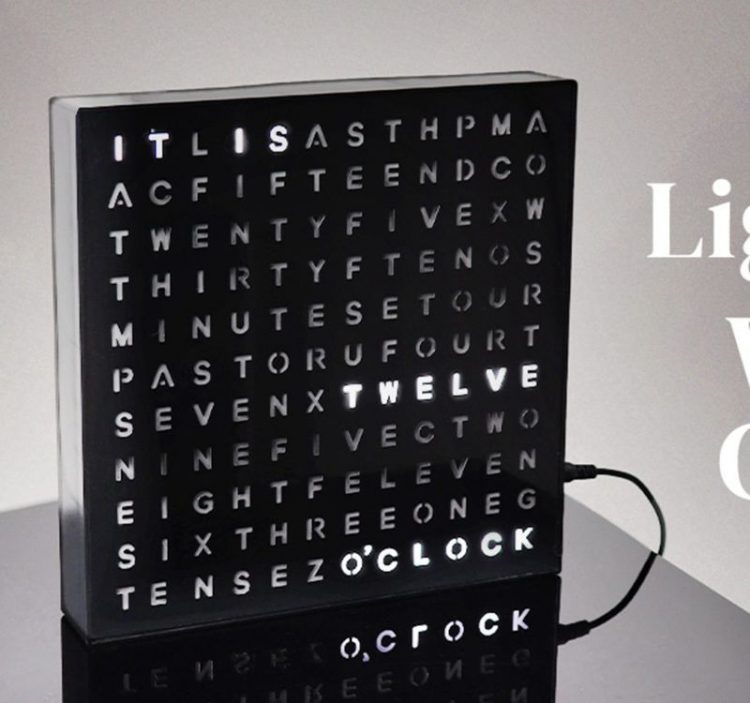 Stiles 英文字母时钟时尚简约造型,通过点亮英文字母,提示目前的时间,用作桌面摆件。