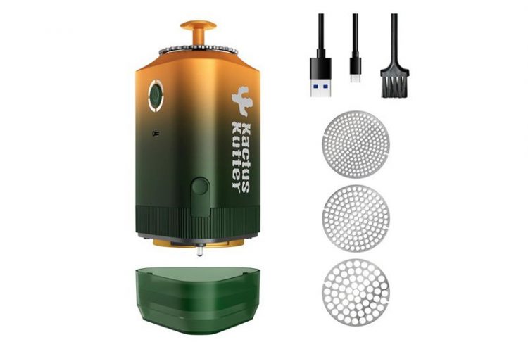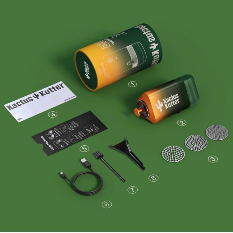 KACTUSKUTTER K5 电动厨房研磨机用于叶子类软香料和香草的研磨,比如罗勒、香叶、香芹,不能用于胡椒、咖啡豆、果壳和硬物,配备三种不同尺寸的研磨盘,可研磨出不同粗细的香料粉,自带接粉杯,方便使用。