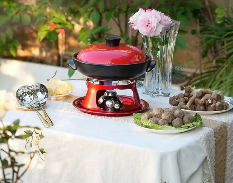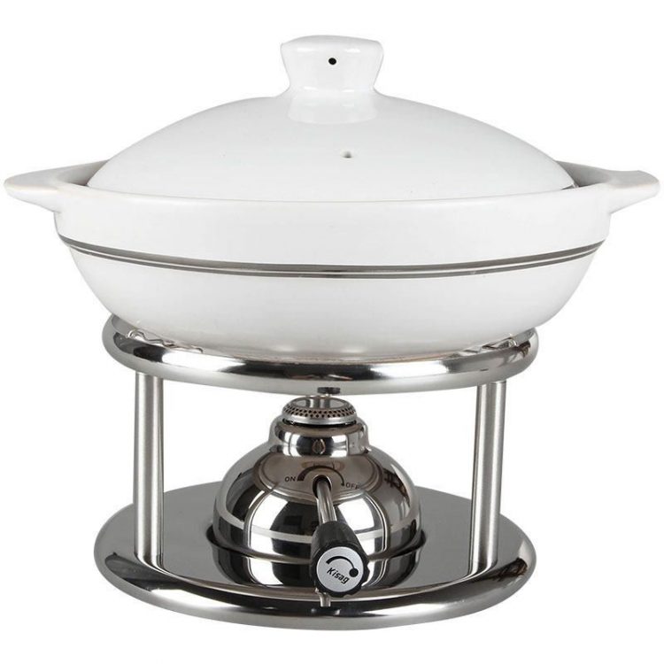 家用干锅炉采用分体式卡式炉设计,配备陶瓷煲,可充燃气,用作户外野炊或者临时烧煮。
