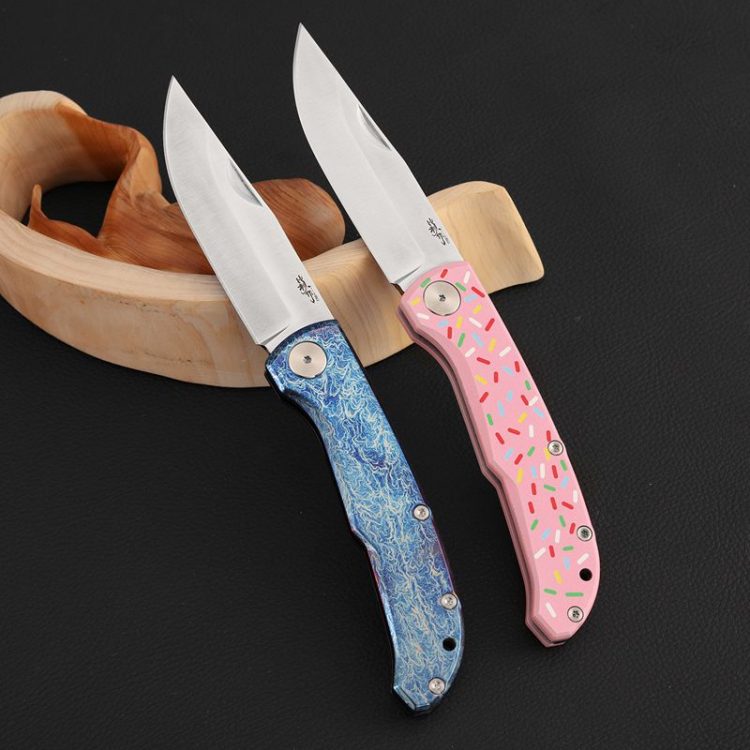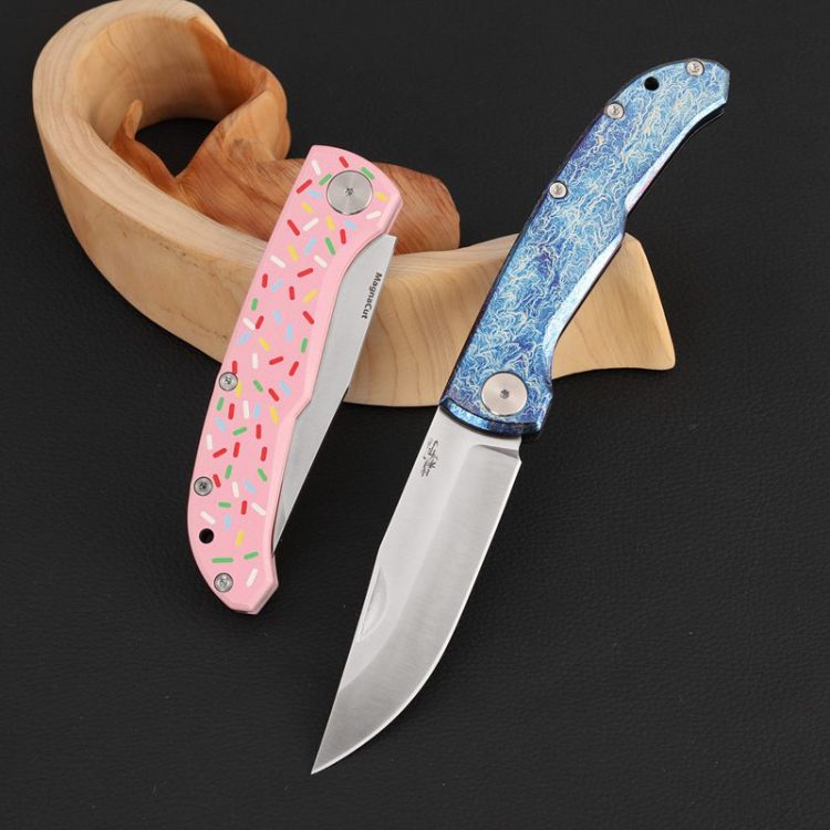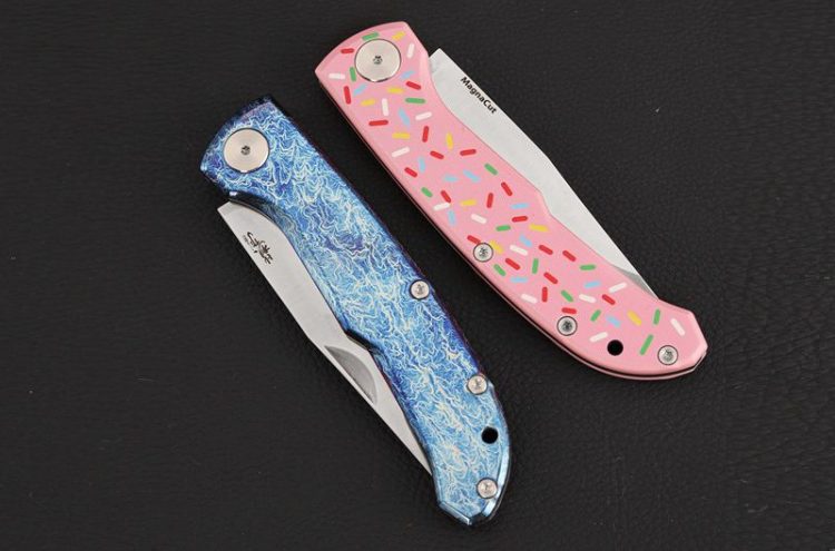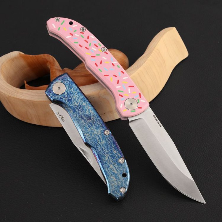 MagnaCut 粉末钢折叠口袋刀采用彩色烧钛刀柄,粉末钢刀体,用作高强度户外便携刀具。