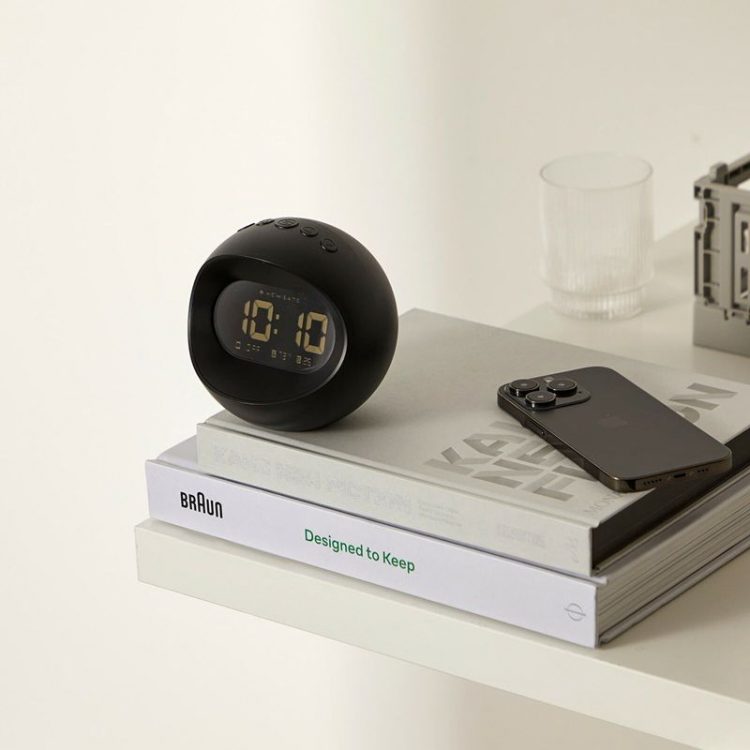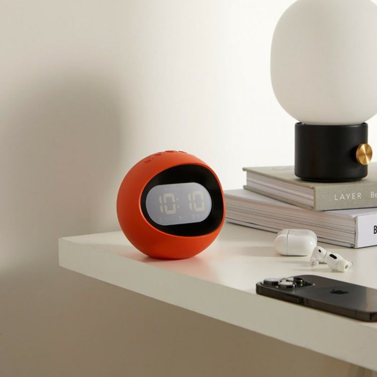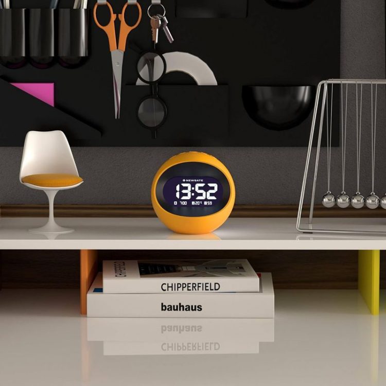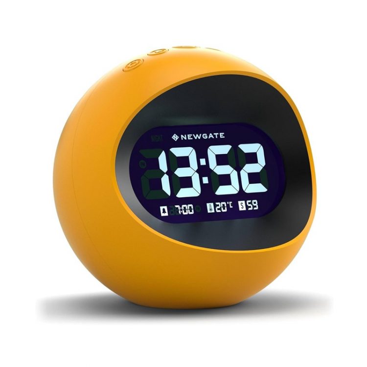 NEWGATE 地球中心闹钟采用时尚复古的设计风格,外形流畅圆润,配备明亮清晰的液晶显示屏,顶部按钮操控,带闹钟和贪睡功能,设有专门的时间、日期和房间温度切换开关,简洁方便,适合现代风格家居卧室床头使用。