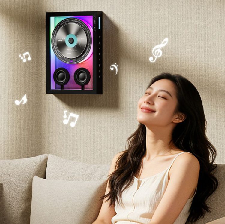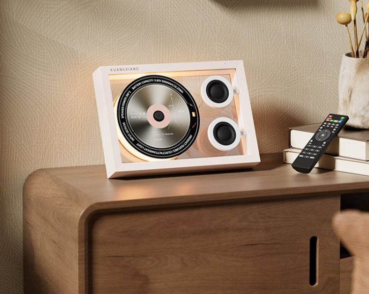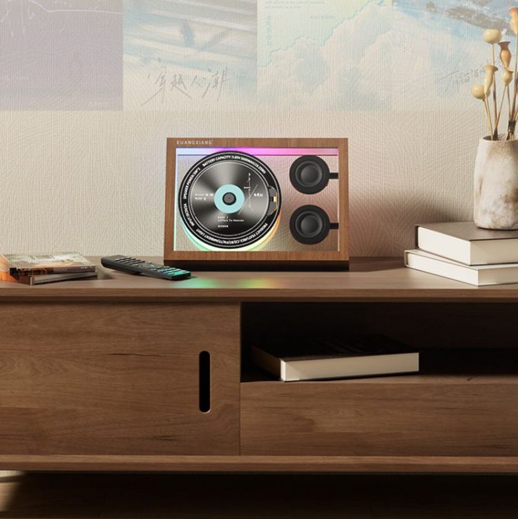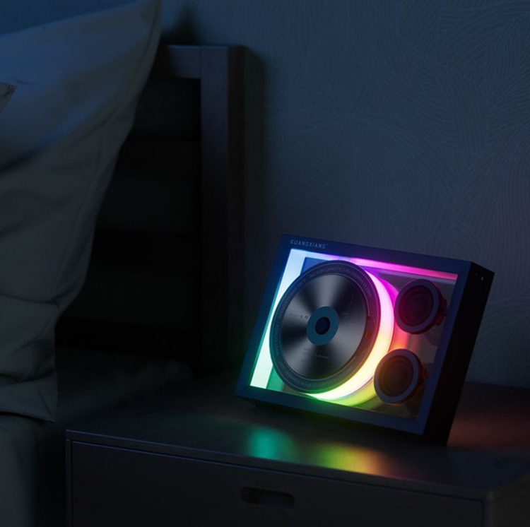 狂响 K18 音乐相框可摆放在桌面,可挂在墙壁,支持氛围灯效果,空来播放 CD 唱片或者手机播放蓝牙音乐,内置麦克风,支持无线通话,还可用作收音机。