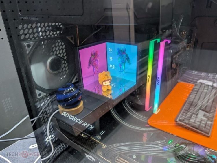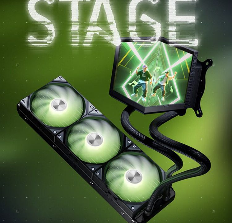 创氪星系 TRYX 影域 STAGE 360 CPU 水冷散热器带两块垂直屏幕,形成一个立体显示空间,就像一个创意舞台,既是散热部件,也是个性化展示平台。