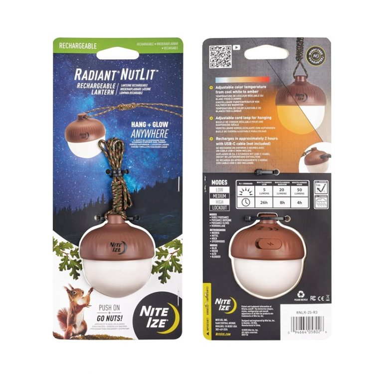 奈爱 Nite ize Radiant NutLit 露营灯采用萌趣松果造型,小巧带挂绳,充电使用,长续航,三挡亮度,用于野外帐篷照明。