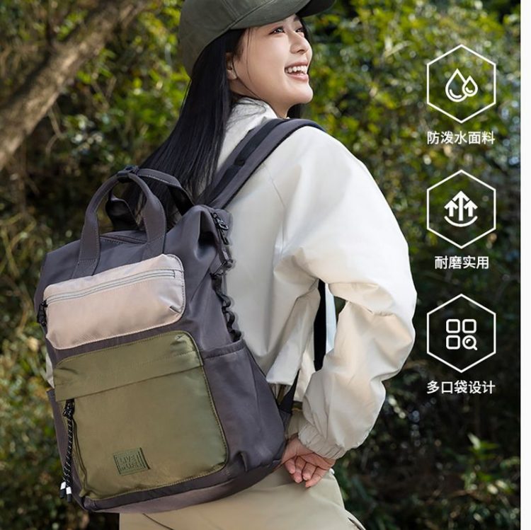 花间公主 Flower Princess 撞色双肩包大容量、防泼溅,可调节开口,用于户外、旅行、登山。